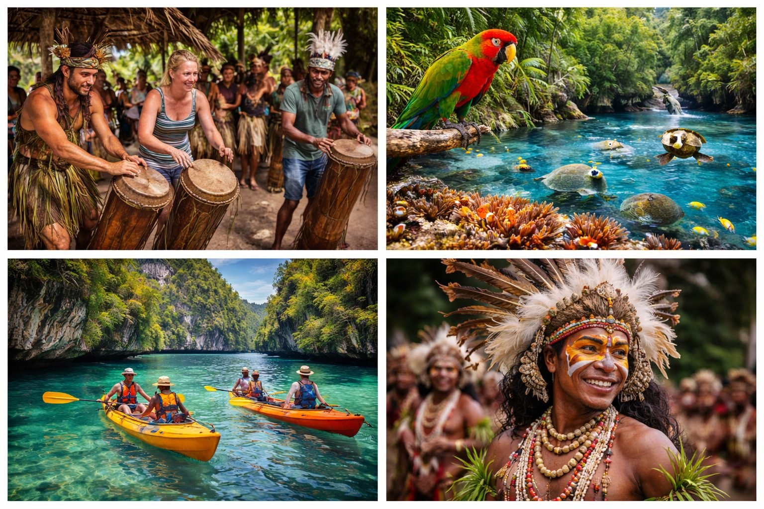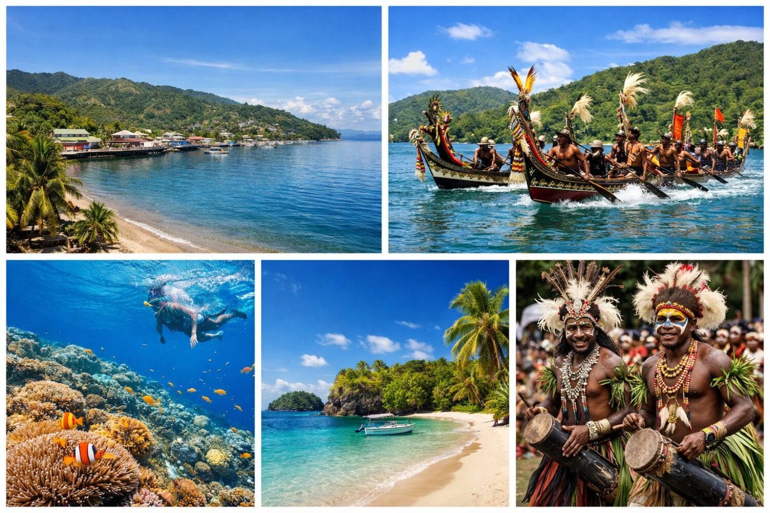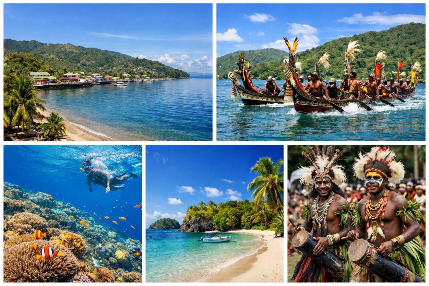 The Milne Bay Province Cultural and Island Adventure Tour offers visitors an exciting experience of island life, culture, and history. Travelers will explore beautiful islands, participate in traditional festivals, and learn about local customs and trade systems. The tour includes activities such as the famous Kenu and Kundu Canoe Festival in Alotau and Wagawaga Island, village cultural immersion, island hopping, and visits to World War II historical sites. Visitors will also discover traditional dances, the historic Kula Ring exchange system, and marine adventures like snorkeling and kayaking. This tour provides a perfect mix of cultural learning, relaxation, and adventure in the beautiful islands of Papua New Guinea