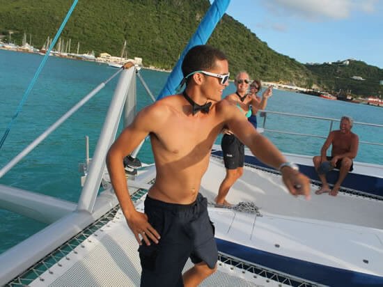 Your journey includes stops at Tintamarre Island, Creole Rock, Long Bay Beach (La Samanna), and a sail past Maho Beach — where you can witness planes landing just overhead!
